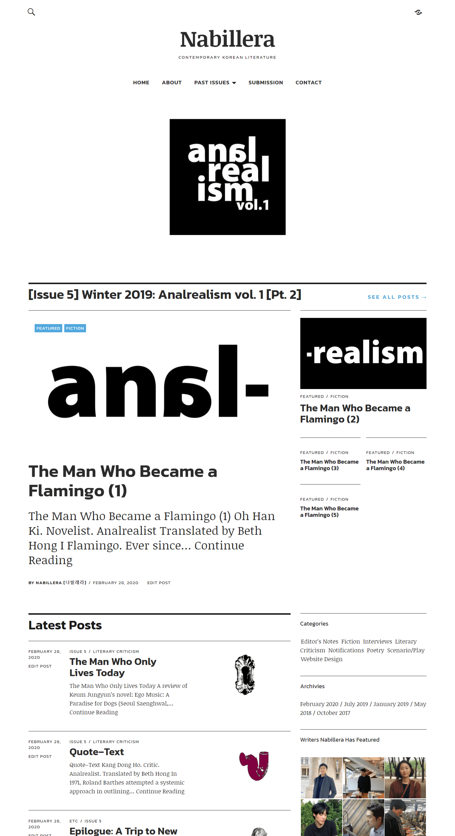 Since then, I have translated for multiple projects, such as Humans of Seoul (a street interview series) and Time to Read Poems (an award-winning documentary). Moreover, my translations have also appeared in an IB textbook, city government event, online journal, and academic publications and presentations. In December 2016, I launched Nabillera: Contemporary Korean Literature, hoping to introduce novel attempts in the Korean literary circle to English readers. I published five issues as editor-in-chief until I started graduate school in the fall of 2019.